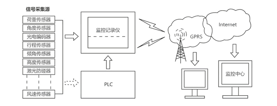 系統(tǒng)可選配GPRS遠(yuǎn)程監(jiān)控系統(tǒng),將信息傳輸至遠(yuǎn)程平臺,能夠?qū)崿F(xiàn)設(shè)備操作者、遠(yuǎn)程管理者等層次的管理需求,有效提升了起重機的安全性能和信息化管理效率。能夠?qū)崿F(xiàn)操作者、遠(yuǎn)程管理者等層次的管理需求,有效提升了起重機的安全性能和信息化管理效率。
