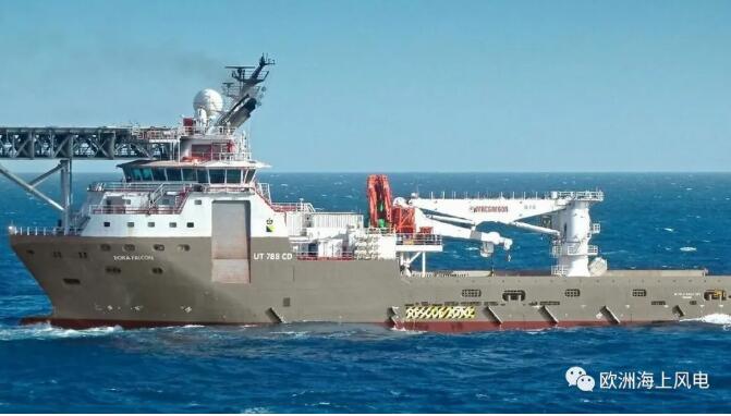 浮式基礎(chǔ)將從西班牙Ferrol被運輸?shù)胶商m鹿特丹,在鹿特丹完成風(fēng)機吊裝,然后由Boskalis的Fjord號拖運至現(xiàn)場。系泊安裝工作也同步進行,Boka Falcon號將在本月底前完成錨和錨鏈的安裝。