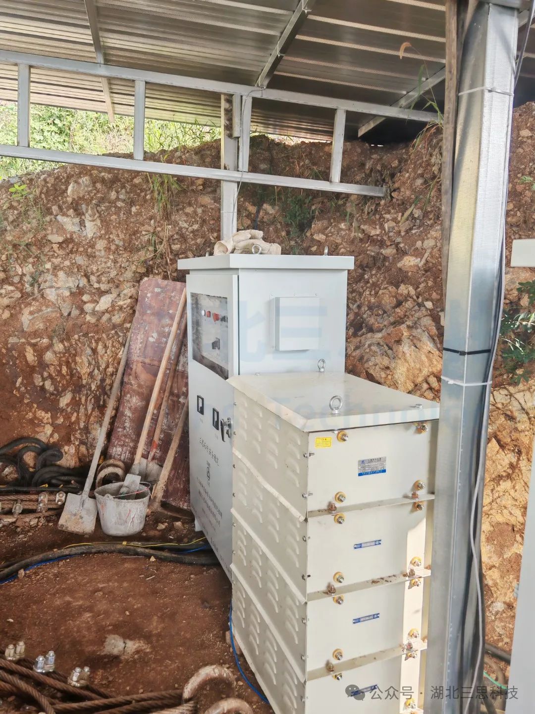 ▲戶外電氣柜、GNSS北斗定位基站、網橋無線傳輸系統(tǒng)安裝完工展示。