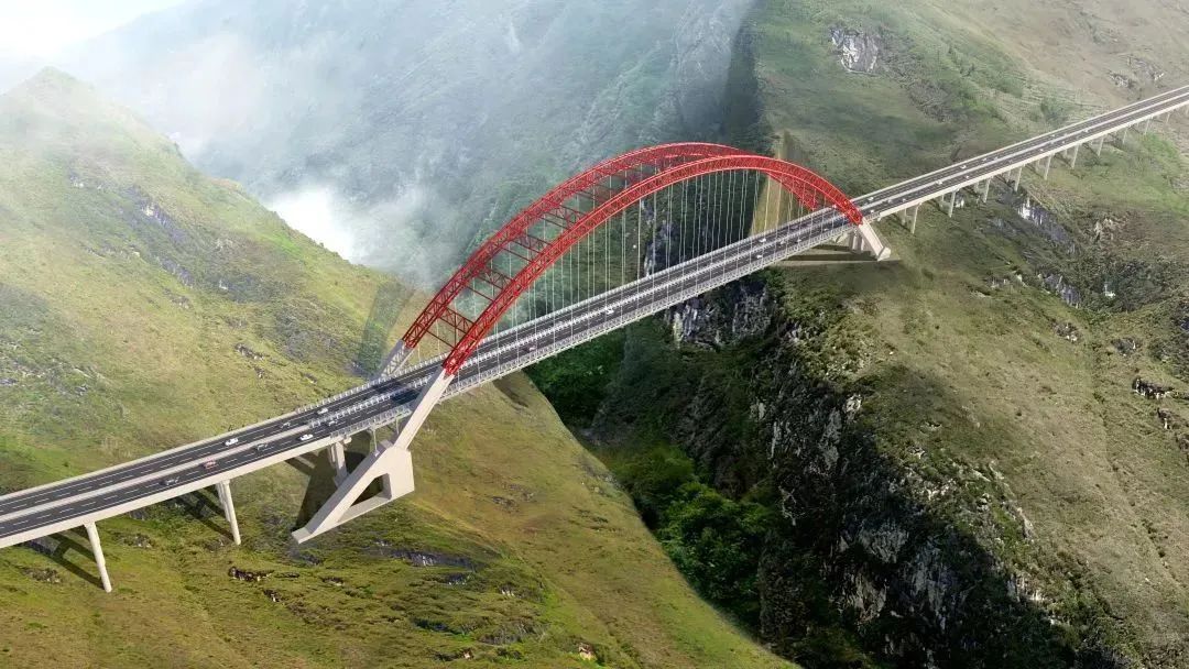 上烏角特大橋位于四川省涼山彝族自治州雷波縣境內,為鋼管混凝土中承式拱橋。上烏角特大橋主橋為332.5m的中承式鋼管混凝土拱橋,拱圈首創(chuàng)采用左右不對稱高低拱設計,左側拱肋凈跨徑310m,右側拱肋凈跨徑306m,分別由4根φ800mm的鋼管混凝土弦管組成,內灌C60混凝土。大橋纜索吊裝系統(tǒng)跨徑組合布置為203m+395.5m+297m,最高塔高155m,設計吊重為90t。