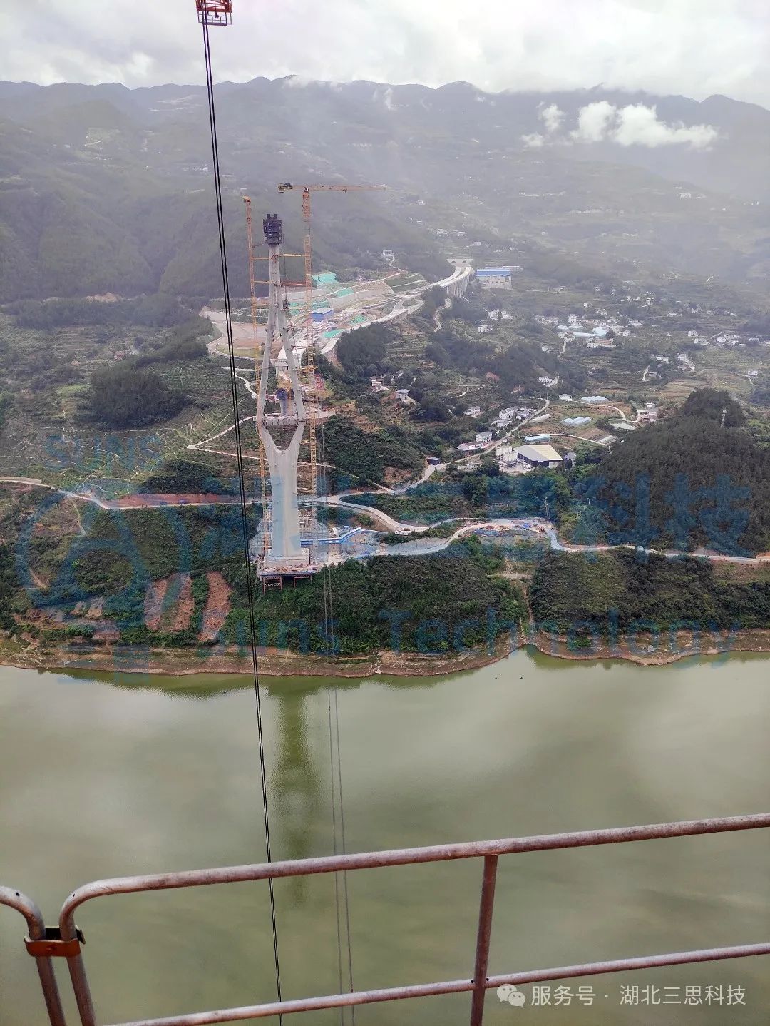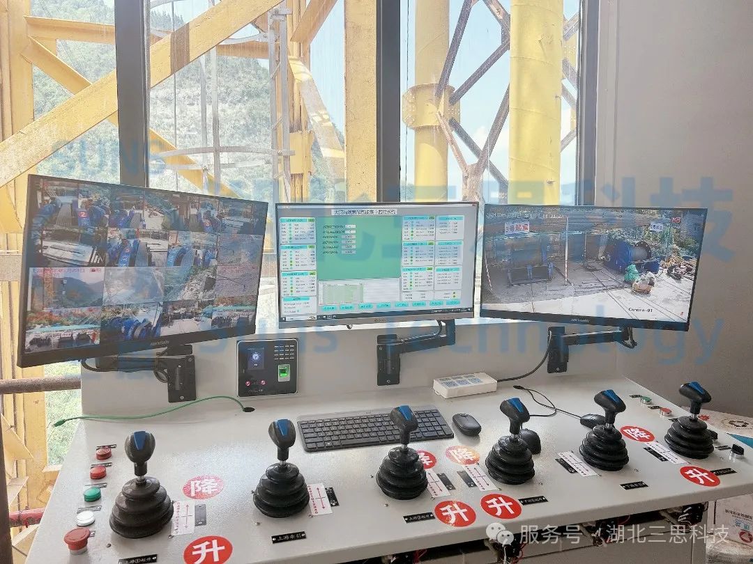 大溪河特大橋,坐落于重慶市奉節(jié)縣大溪河上,是奉建高速公路全線的控制線重點工程,屬超高塔、超大跨度斜拉橋,塔高316米,主跨650米;橋長1624米,其中主橋1170米,引橋長454米。大橋采用雙塔雙索面斜拉方案,跨徑布置為92米+168米+650米+168米+92米。主梁采用雙邊工字形鋼-混組合梁,梁寬27.6米,為世界第一跨度雙邊工字形組合梁斜拉橋,世界第二跨度組合梁斜拉橋,橋塔高度名列世界前茅。本次大溪河特大橋采用了由湖北三思科技自主研發(fā)的SSL-CB型纜索吊集中控制系統(tǒng),本系統(tǒng)是專門針對纜索吊此類特殊起重機開發(fā)的控制系統(tǒng),不僅包含了常規(guī)的特種設備監(jiān)控系統(tǒng)所需求的數(shù)據(jù)和視頻監(jiān)控之外,還特別添加了可將纜索吊卷揚機控制集中到一處控制的功能。集中控制不僅減少了人力成本,方便了操作員集中操作,更使纜索吊控制變得簡便、更安全,更提高了施工現(xiàn)場的吊裝效率,大大縮短了工程工期。