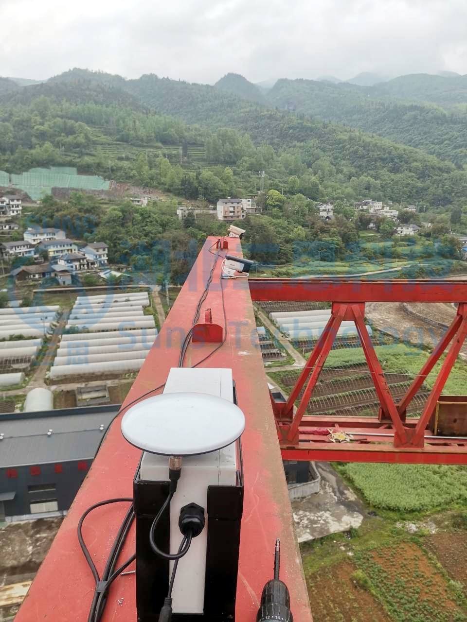 該項(xiàng)目架橋機(jī)安全監(jiān)控管理系統(tǒng)帶智能監(jiān)測(cè)系統(tǒng),通過(guò)在塔頂安裝GNSS北斗定位基站來(lái)實(shí)現(xiàn)塔身偏移監(jiān)測(cè),實(shí)時(shí)監(jiān)測(cè)架橋機(jī)前后高差及平行狀態(tài)。