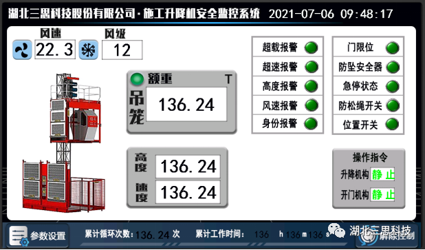 采用工業(yè)高亮度彩色液晶顯示器,10寸超大顯示界面,支持實(shí)時(shí)記錄重量、高度、風(fēng)速、限位等數(shù)據(jù),并提供預(yù)警、報(bào)警信息,實(shí)現(xiàn)升降機(jī)的全方位保護(hù)。